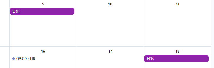 現在のところはGoogleカレンダーに「日記」カレンダーを作成して