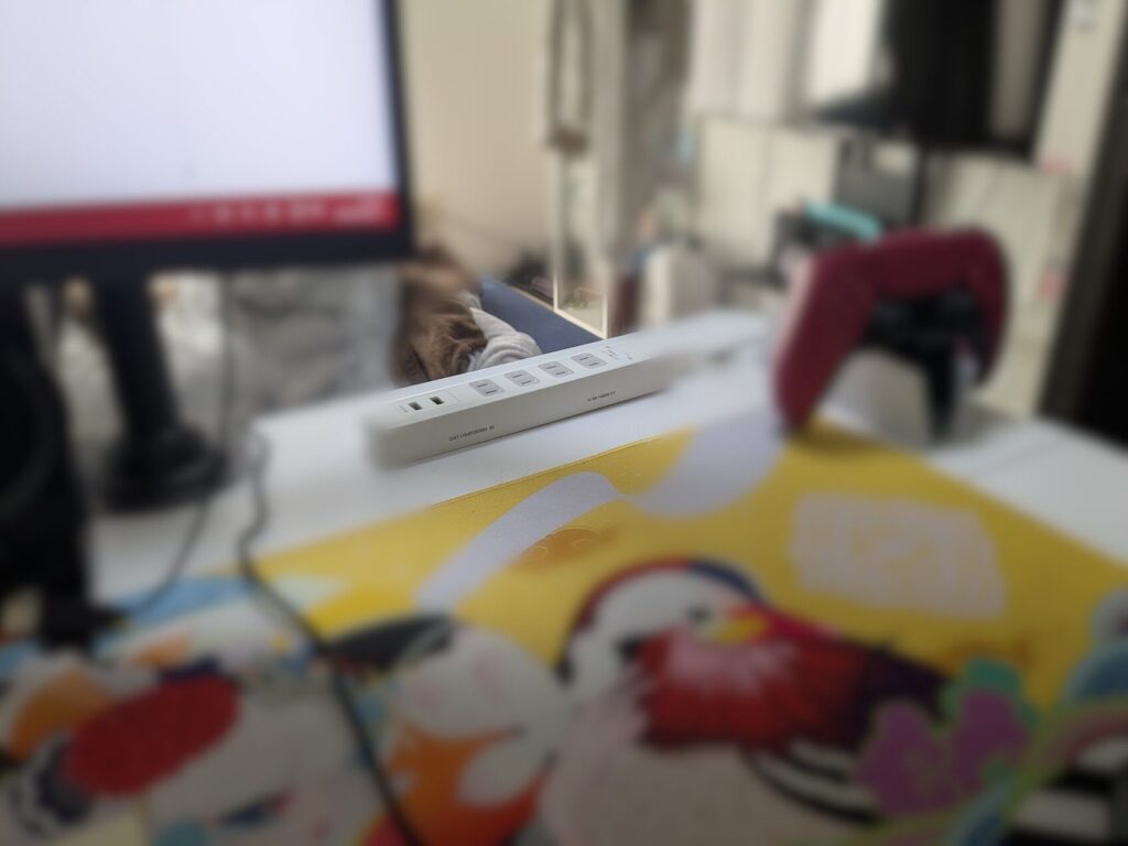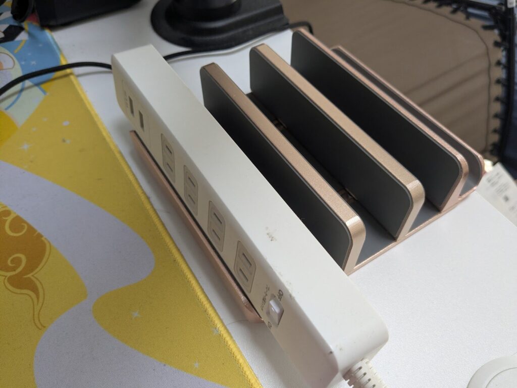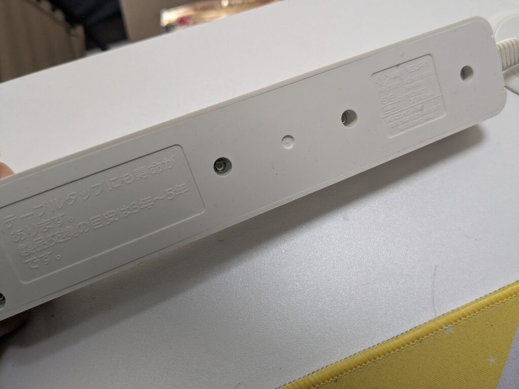 この家に転がっていた電源タップを使って、どうにかこのデスク上の電源を確保しようと思います