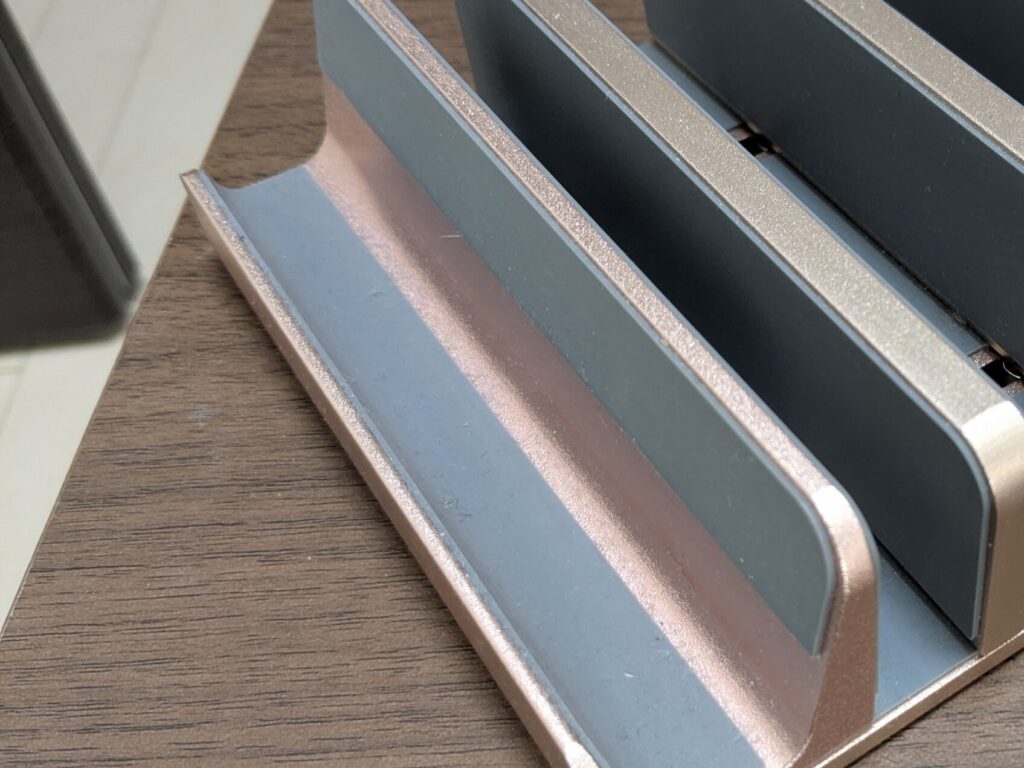 抜くときに少し押さえないと動いてしまうものの、ノートブックスタンドの滑り止めがいい感じに作用してそれなりに安定!