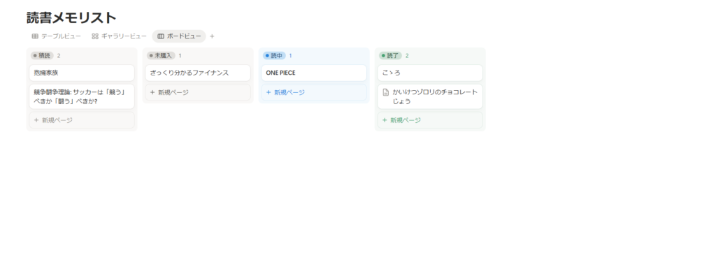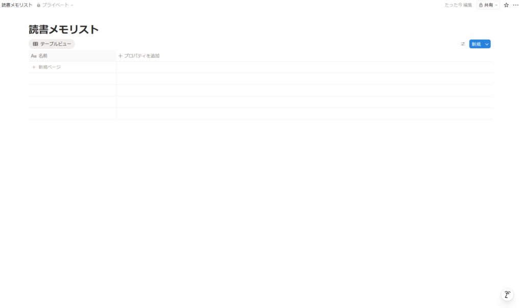 そしたら今回作成したいリスト、ここでは例として「読書メモリスト」を作成しようと思います