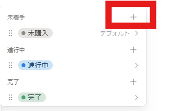 ステータスを追加したい時は+をクリックすれば…