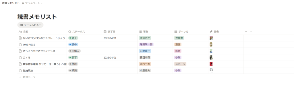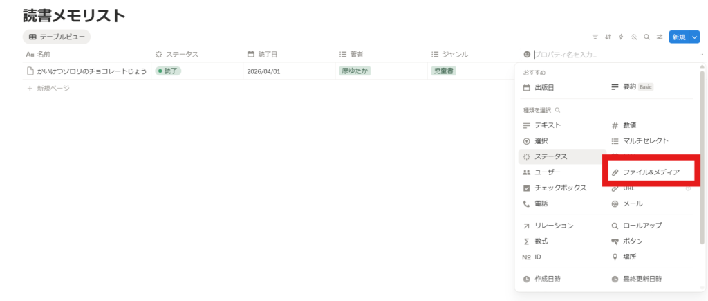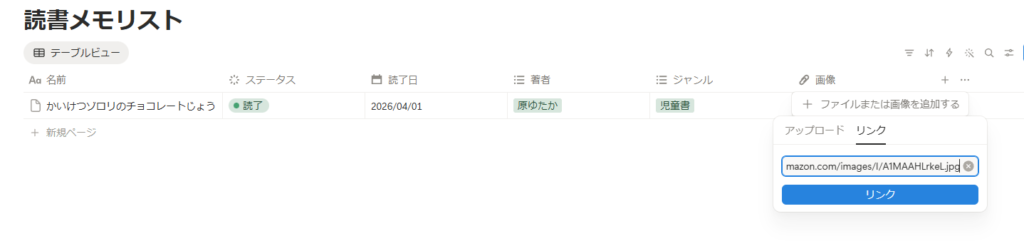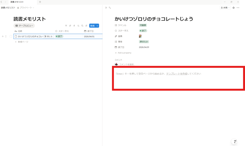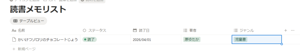 これで項目完成、読み終わったらここに日付を入れるだけです!