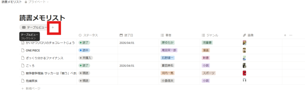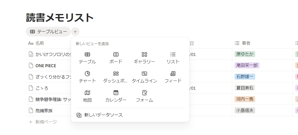 ではここから管理をよりしやすく、楽しくしてくために「ビュー」をいくつか追加していきましょう!