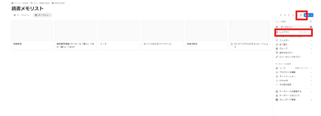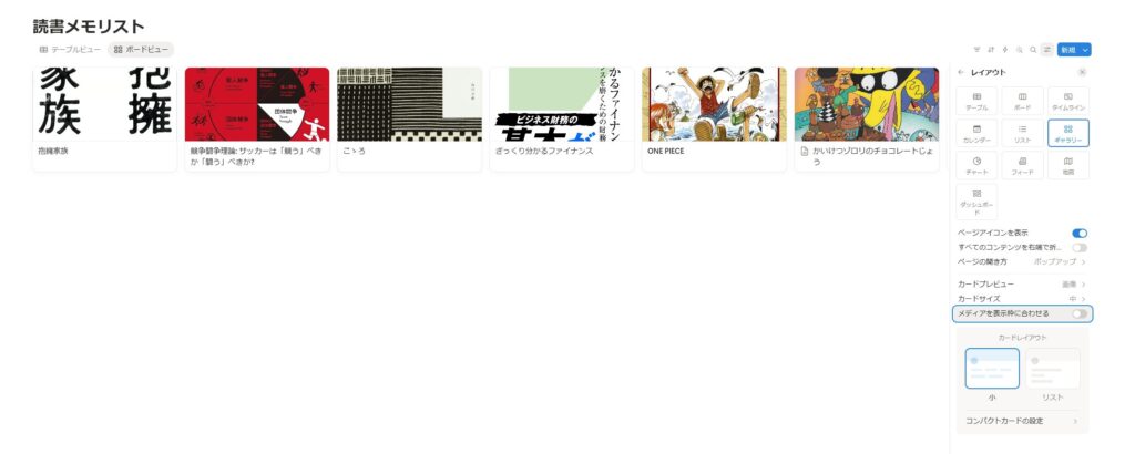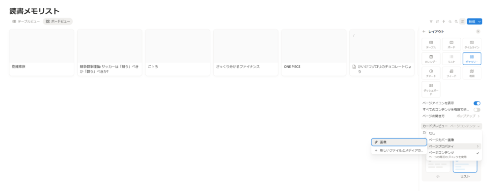 データベース名下に「テーブルビュー」「ギャラリービュー」があるかと思いますが、ここをクリックすればすぐに先ほどまで作っていたリストと今作った画像でのリストを切り替えることができます