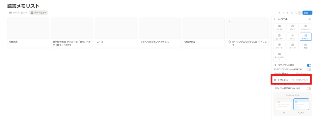そうすると画像は表示されないですが、下画像のように一つのページがカードのように表示されました